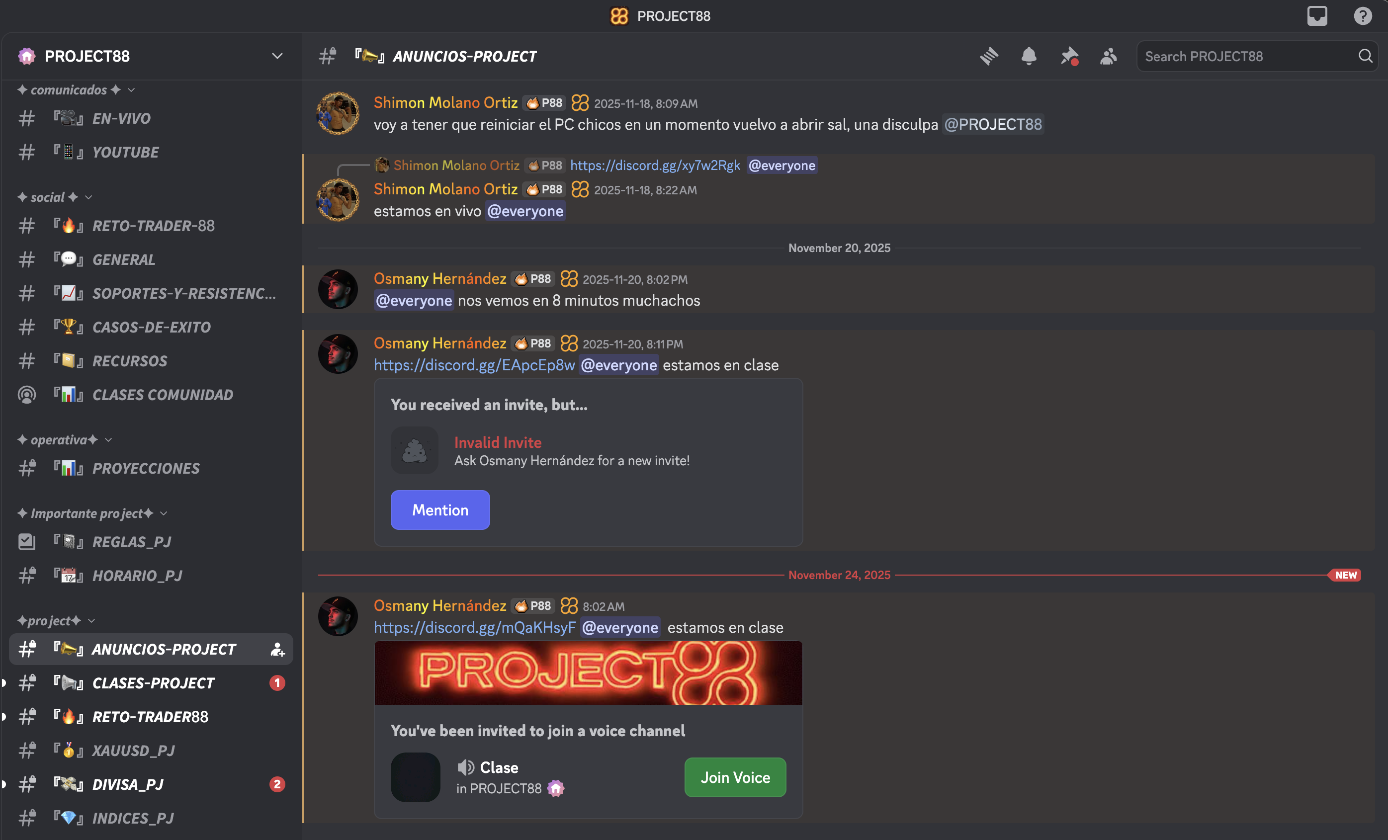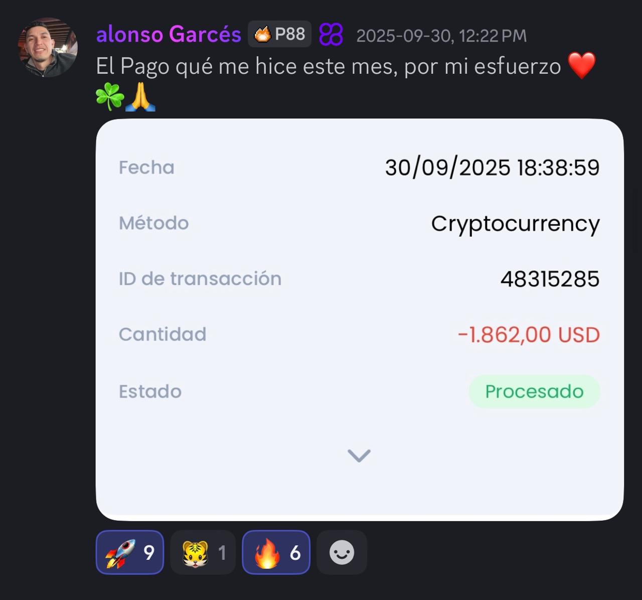 Hay clases, sí, pero también revisión de trades, preguntas sobre tu proceso y una comunidad activa que entrena contigo.